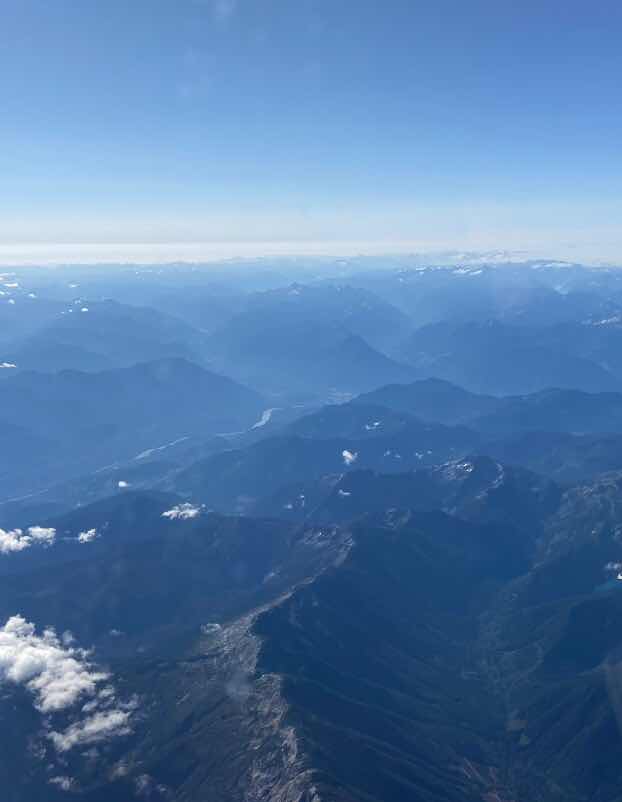 No blogger can fly across the Canadian Rockies and not insert some mountain photos! These razorback mountains west of Calgary were amazing from the air.